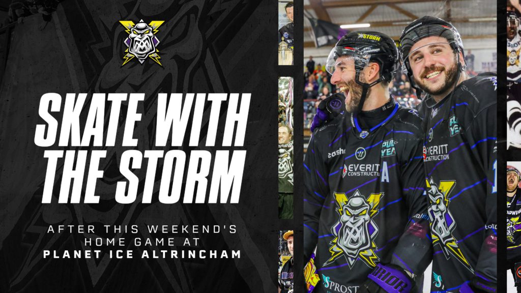 Manchester Storm are delighted to announce the return of the highly popular ‘Skate With The Storm’, taking place after Saturday’s league fixture against the Dundee Stars! The post-game skate will run from 9:30PM to 10:30PM, and is FREE for all game ticket holders who bring their own skates. If you require skate hire from Planet…