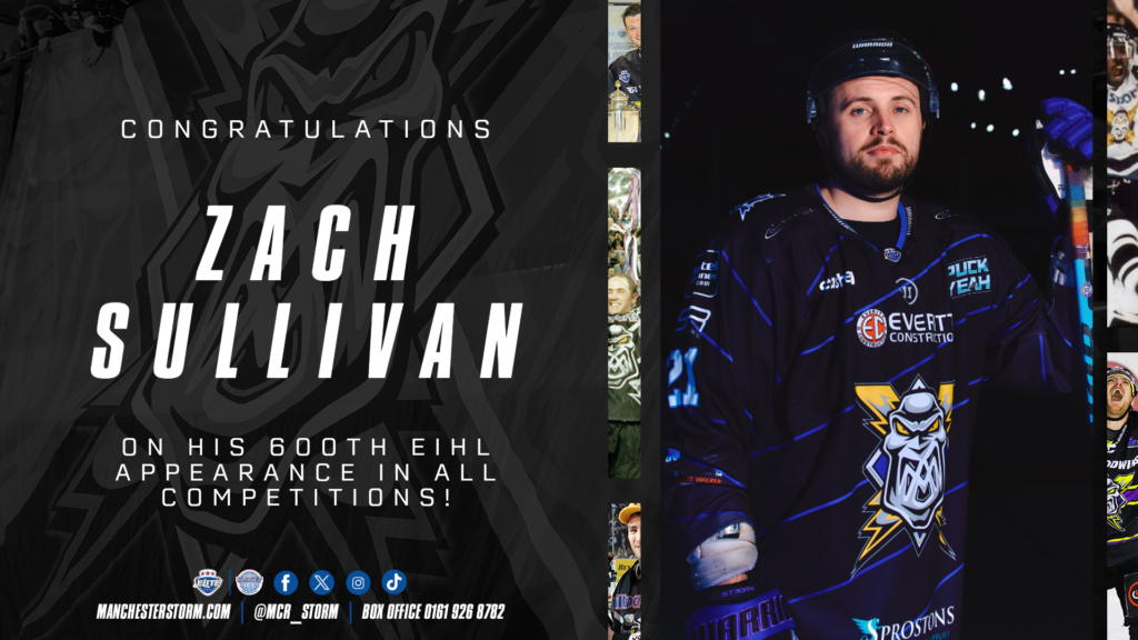 Storm defenceman Zach Sullivan is hoping to make his 600th appearance in all Elite League competitions a memorable one with two points against Nottingham Panthers on Saturday. The experienced blue liner will become the 25th skater to hit that particular milestone if he hits the ice at the Motorpoint Arena in the Challenge Cup tie….
