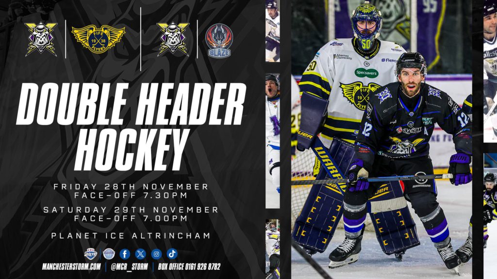 Manchester Storm are delighted to announce the return of the hugely popular ‘Skate With The Storm’, taking place after Saturday’s home fixture against the Coventry Blaze – the perfect way to finish off our double-header weekend at the Storm Shelter! But first… we’re at home on Friday night too as we host the Fife Flyers! Join…