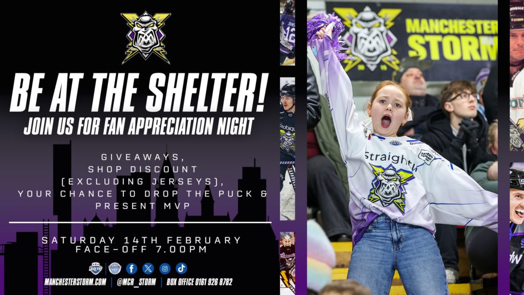 This Valentine’s Day, Manchester Storm is putting the spotlight where it belongs – on our fans! Fan Appreciation Night brings the Storm family together to Spread the Love in a game-night celebration designed to thank, empower, and celebrate the supporters who bring the thunder every single game night at the Shelter! This special fixture is…