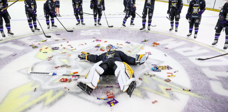 A good stop by DeRidder in the eighth minute, preventing a well-directed tipped effort, was the first moment of note in the Sunday evening affair as Manchester and Fife eased themselves into the encounter. The ever-present Owen between the Flyers’ posts then responded with his own fine save, kicking away Johnson’s effort at the midway point of the opening period. An excellent individual play by Cutler saw him showcase his puck-handling skills before finishing with aplomb to open the scoring with 48 seconds remaining in the period. A wonderful tic-tac-toe play a few seconds later doubled the hosts’ advantage, as Gilmour finished the passing move from Haden and Locke, sending the visiting Flyers into the dressing room reeling from this quick double punch.